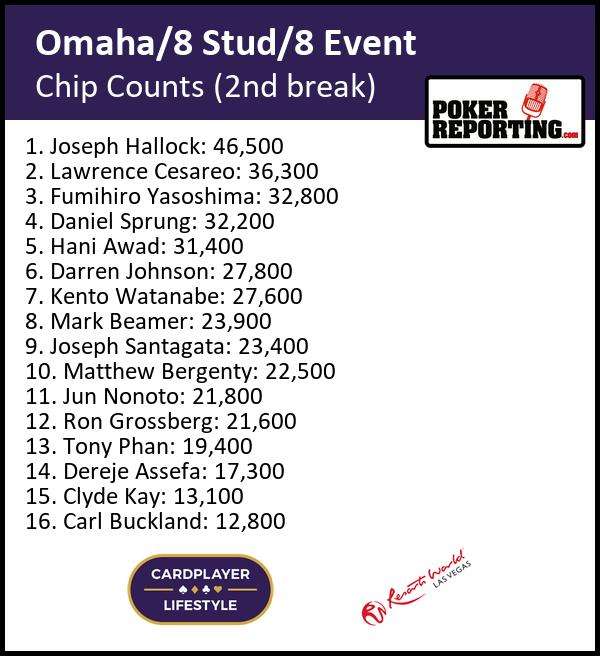 Deeb’s pair of eights holds to eliminate Ajayi and the pot pushes his stack upward to 250000 as the next hand is prepared.