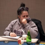Though he played strongly throughout the tournament and entered heads-up play with the chip lead, Joseph Hallock is in trouble in his heads up battle against Kento Watanabe. He had just stacked up a little after three-betting Watanabe off of an O8 flop. But then he took several O8 hands to the river where he was forced to fold, probably because there was no low possible. Watanabe now outstacks him by nearly 10-1 and the end might be in sight.