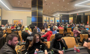 We’re 10 minutes from the second break and 20 minutes from the end of registration! That means when the players come back, things are going to get serious. Well, as serious as they get at this joyous event. Something about the cash games rife with games like Drawmaha and Razzdugi seems to keep everyone in a good mood. But we’ll see if that lasts after the possibility of rebuying disappears…